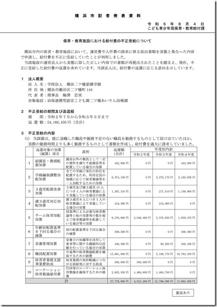 保育の現場である認定こども園で、公金の不正受給が起こっていたことが発表されましたので、お知らせします。